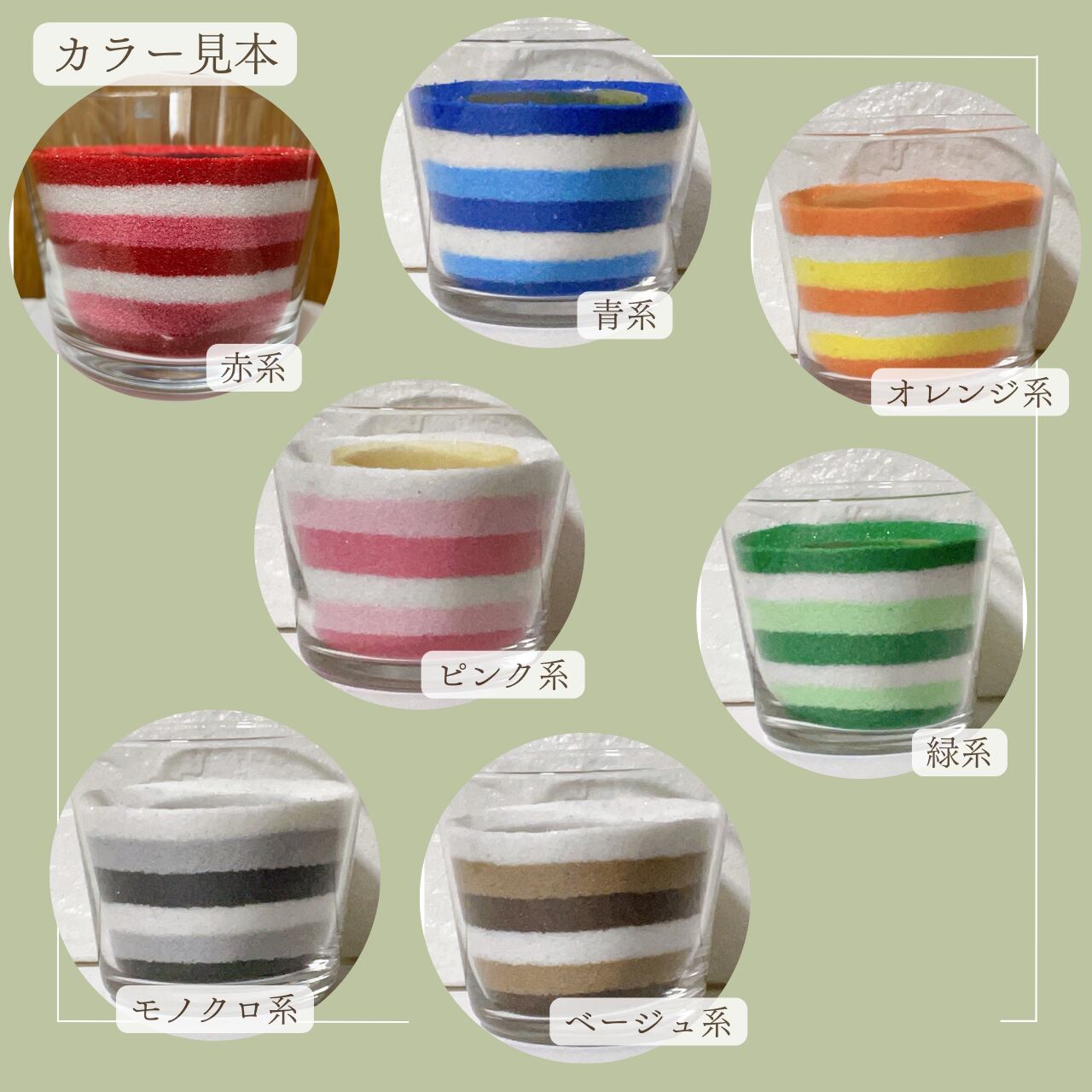 7色から選べるボーダー模様のグラスサンドアート!